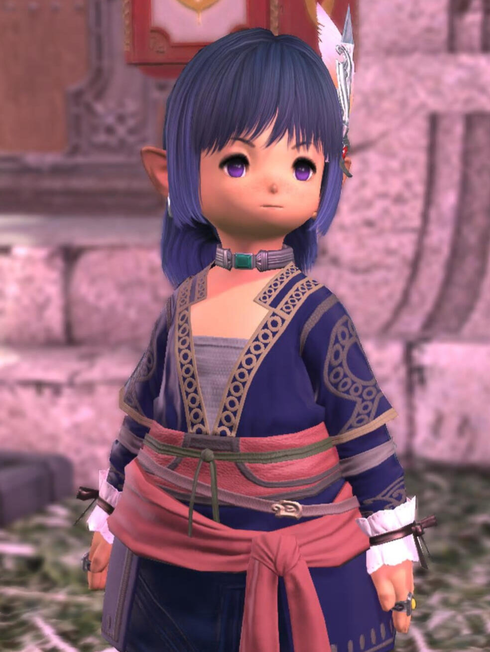 After a fiendish scheme set up by her enemies, Oichi once again finds herself without a gil to her name. The Sanadahime business empire is all but caput. Despite that, Oichi doesn't mourn the money. She gave it all up to save the girl she loved and would do it again in a heartbeat. Saving Ina had left Oichi with a scar on her forehead, but she tries her best to hide it with her hair and fashion accessories. Having experienced both poverty and riches has left Oichi more enlightened than when her journey began. While the traveling Sanadahime Adventurers' Emporium is no more, there have been rumors about a Lalafell with a red face stripe living in a small home in the outskirts of Eorzea.